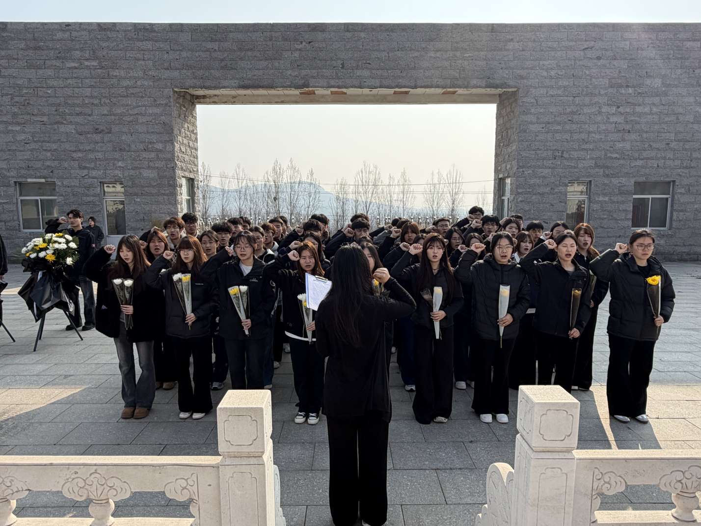 活动现场氛围庄严肃穆。师生代表迈着庄重的步伐,缓缓走向烈士纪念碑。向先烈敬献鲜花、仔细整理花篮缎带,用最朴素的方式表达对革命先烈的崇高敬意。随后,全体师生肃立注目,向为国家和人民献出宝贵生命的先烈们默哀致敬。紧接着,全体同学面向纪念碑,举起右拳庄严宣誓,立志以先烈为榜样,传承红色基因,努力成长为有理想、敢担当、能吃苦、肯奋斗的新时代好青年。仪式最后,同学们用干净的纸巾,小心翼翼地擦拭烈士墓碑,在擦拭中感悟英烈初心,在凝望中传承红色力量。